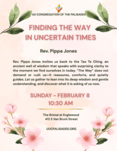 “Finding the Way in Uncertain Times” – Rev. Pippa Jones (In-Person & Online)