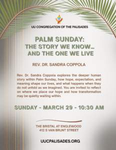 “Palm Sunday: The Story We Know… and the One We Live” – Rev. Dr. Sandra Coppola