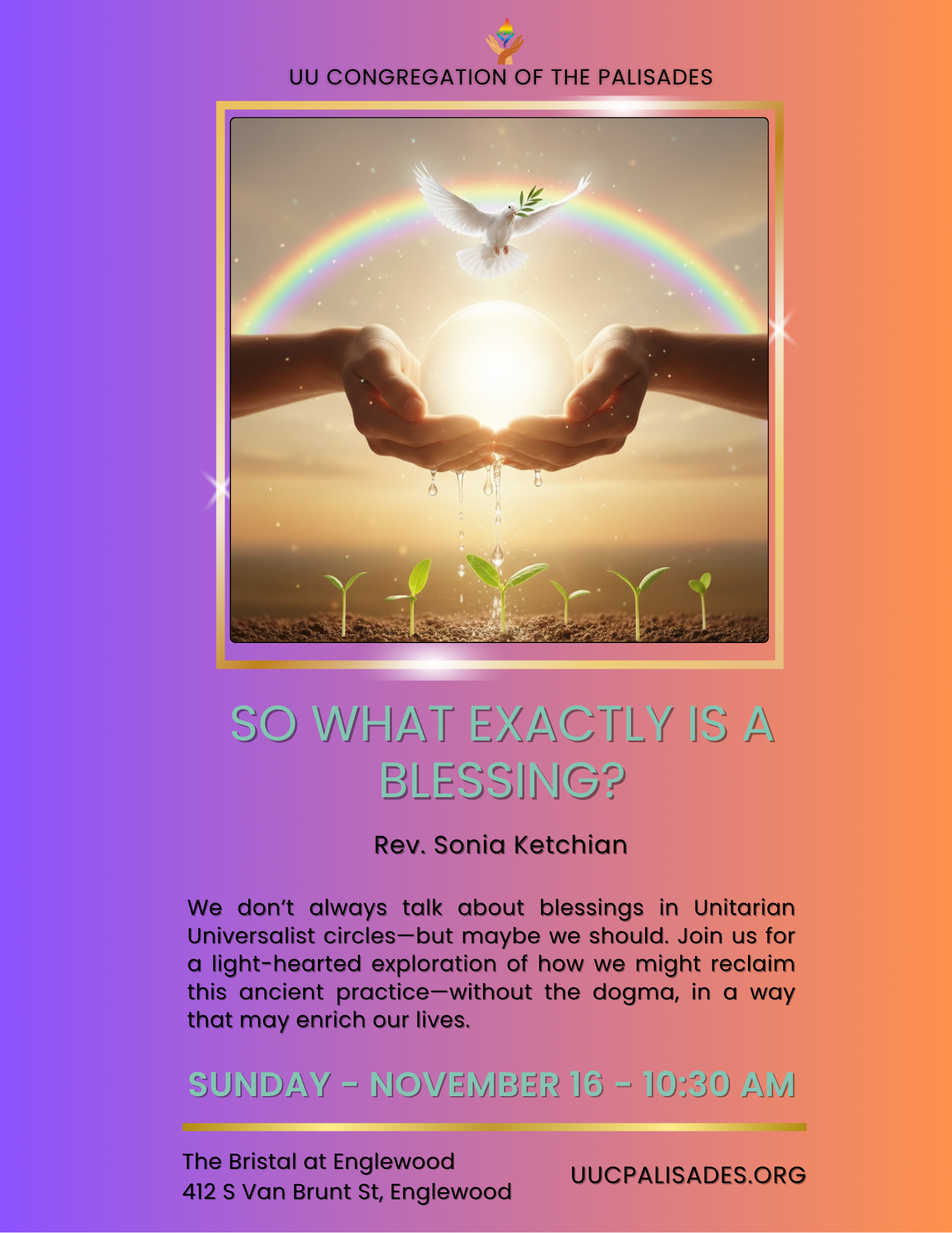 “So What Exactly Is a Blessing?” – Rev. Sonia Ketchian (In-Person & Online)