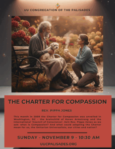 Please join UUCP for today’s ONLINE service, “The Charter for Compassion” led by Rev. Pippa Jones at 10:30 a.m.