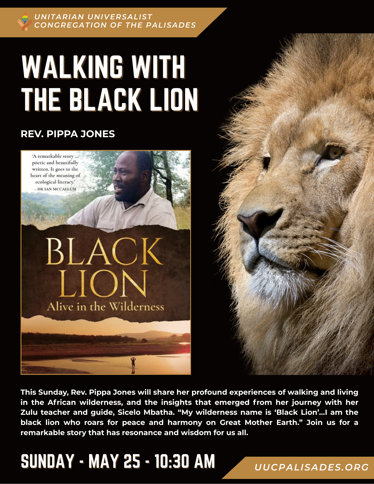 Please join UUCP for today’s online service, “Walking with the Black Lion” led by Rev. Pippa Jones, at 10:30 a.m.