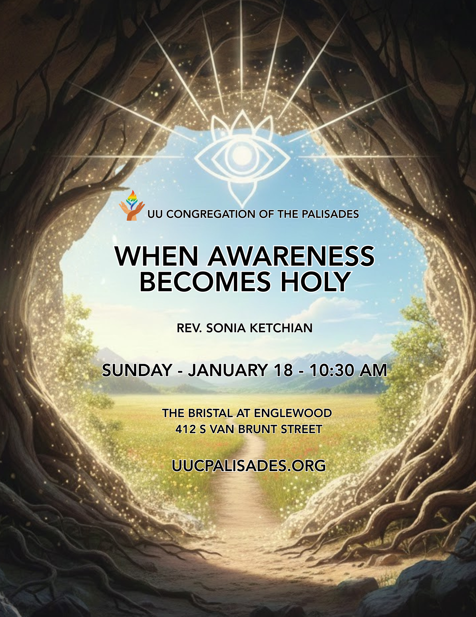 Sunday is here, and we’d love to see you! ☀️ Join us at 10:30 a.m. for an inspiring service, “When Awareness Becomes Holy” led by Rev. Sonia Ketchian. We’re gathering both in person at The Bristal at Englewood and streaming live online. However you choose to join us, you are welcome here!
